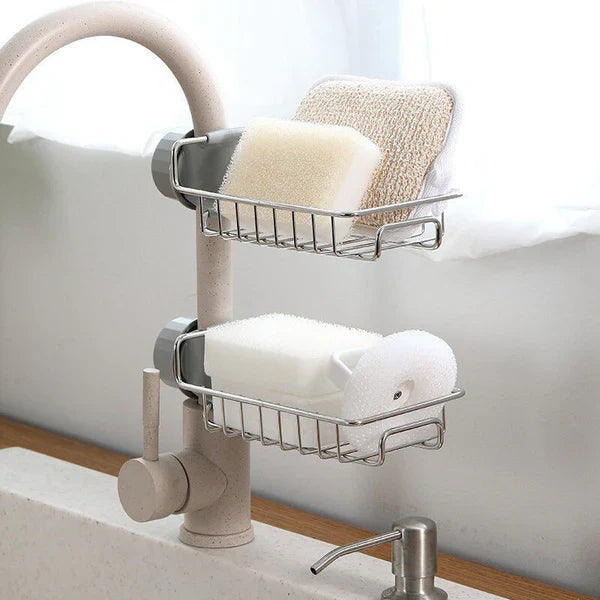 WIDELY USED: This versatile holder is a champ at keeping sponges, scouring pads, nylon scrubbers, brushes, soaps, and liquid soap dispensers within easy reach in the kitchen or bathroom. Perfect for dishcloths, cleaning brushes, and shower caddy soap.